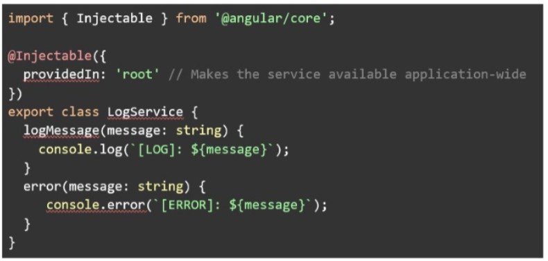 ■ @Injectable(): Decorator that marks a class as a service, making it eligible for injection. The providedIn property specifies which injector will provide the service.