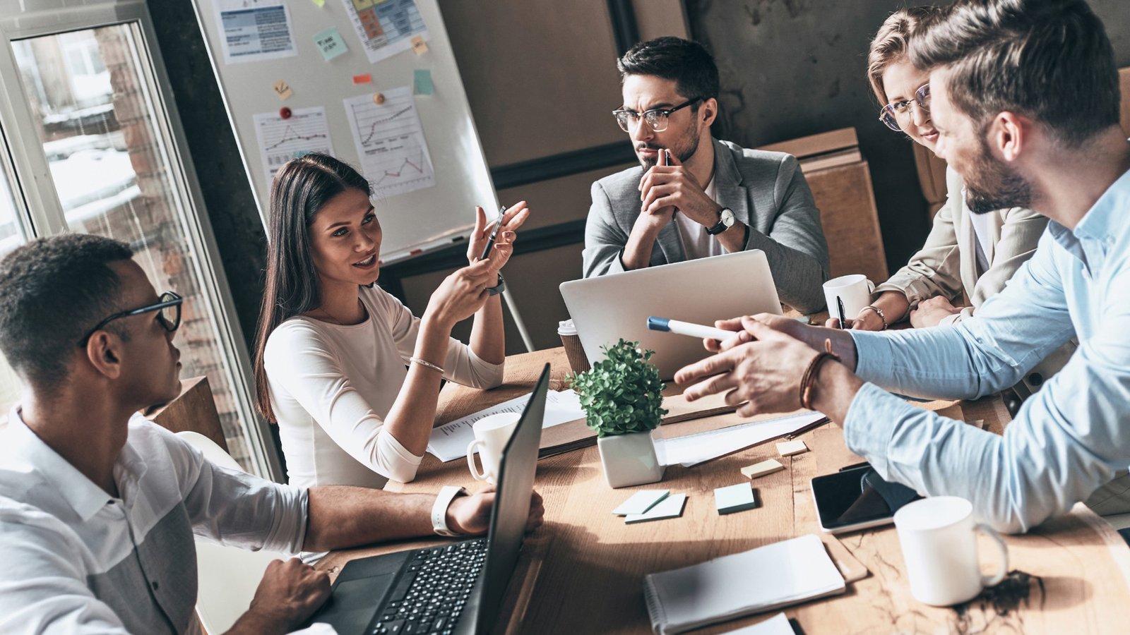 with colleagues on the office floor or a formal setting such as a job interview, asking appropriate questions
