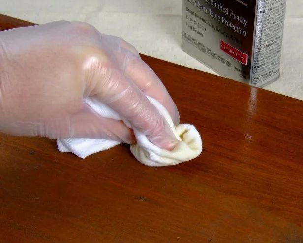 A shellac-based polish is applied with a rubber (a cloth pad) in circular motions.