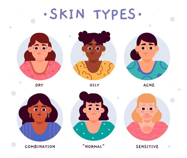 5. Combination: very common; an oily T-zone and dry cheeks and neck