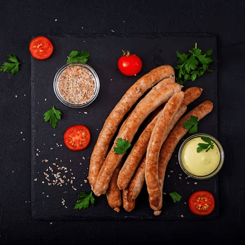 Minced meat products including sausages and burgers