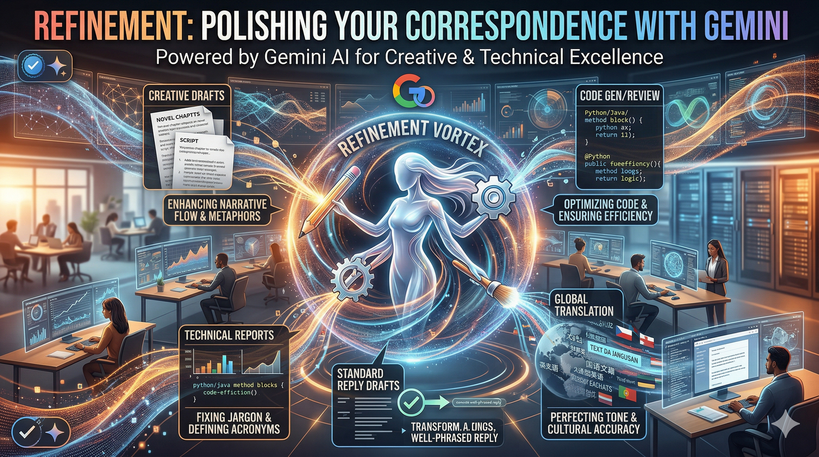 Refinement often involves crossing language barriers. Gemini can refine a draft into multiple languages while maintaining the original professional tone.