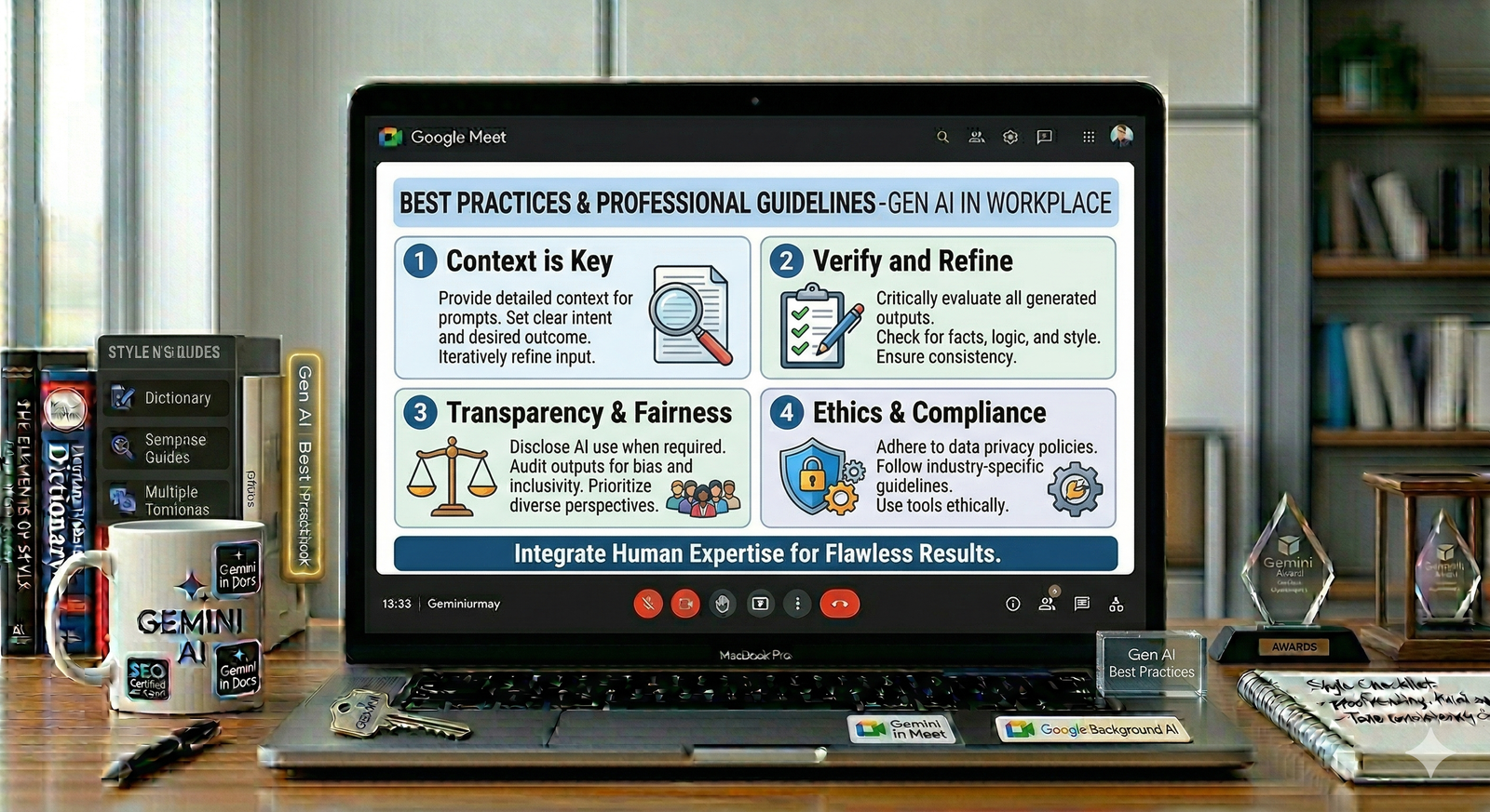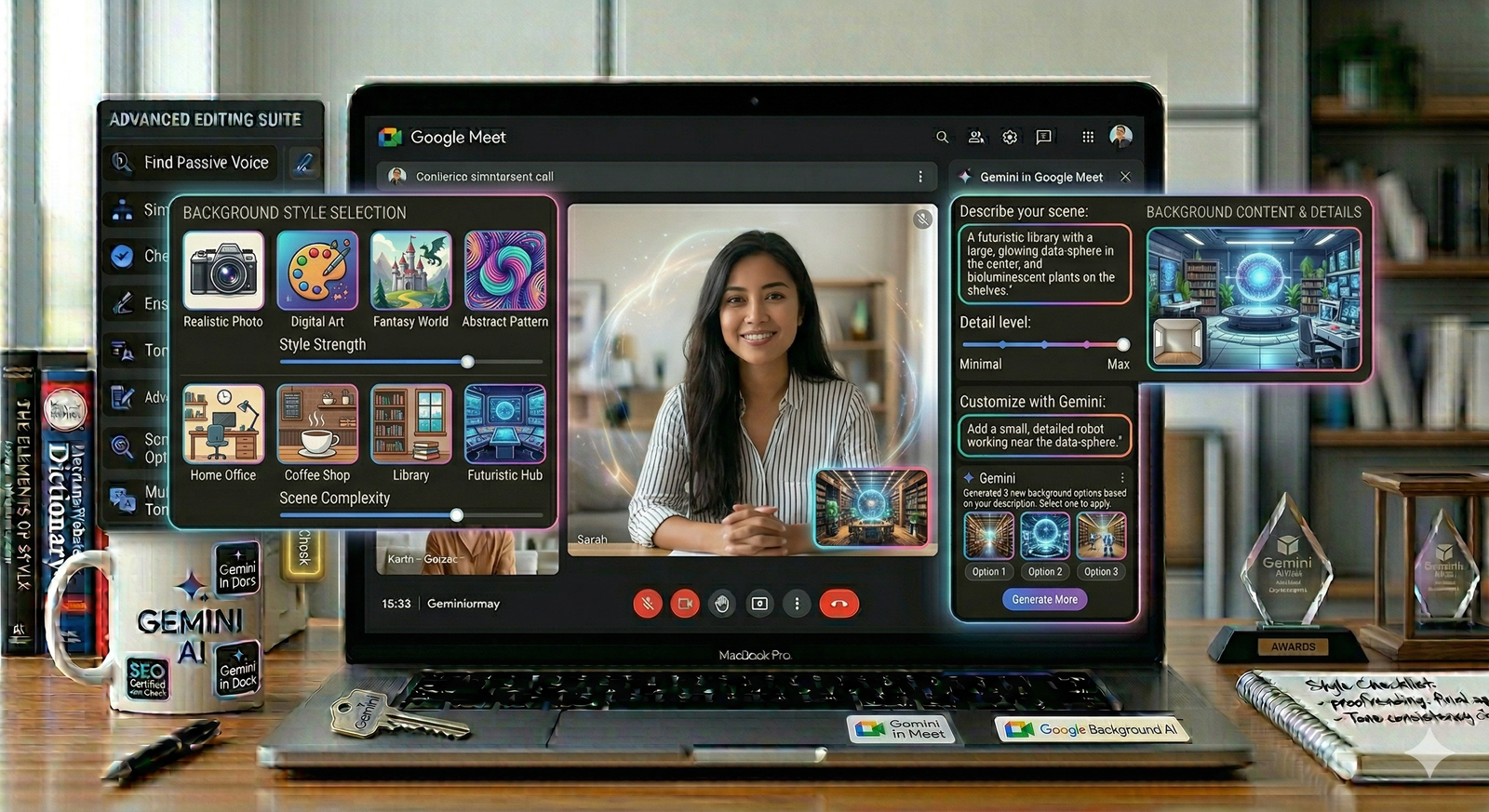 In this module, we move beyond standard blur effects or static background images. With the power of Gemini, Google Meet allows you to generate high-fidelity, custom backgrounds tailored to your specific meeting context, professional brand, or creative mood. This capability turns a simple video call into a personalized, immersive environment.