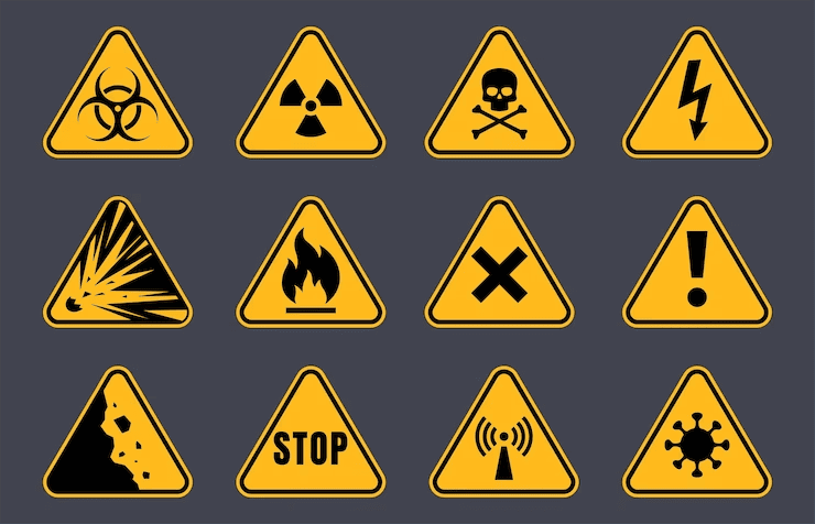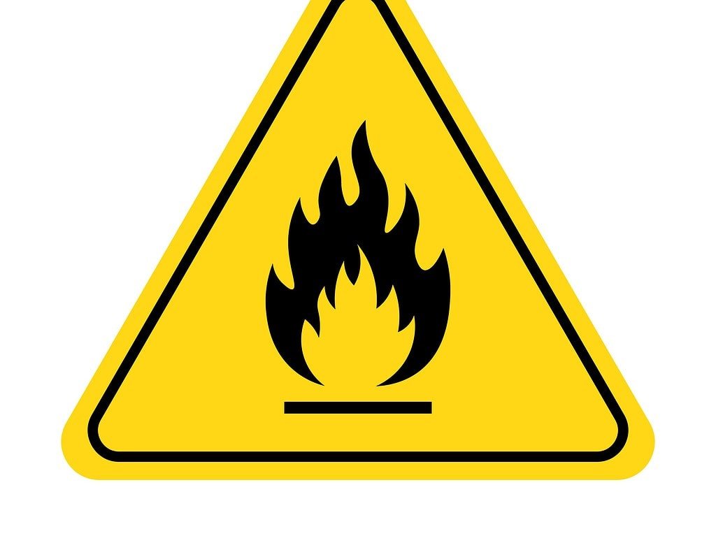 Hazardous products that are purchased will have a hazard warning triangle like this one for “flammable”.