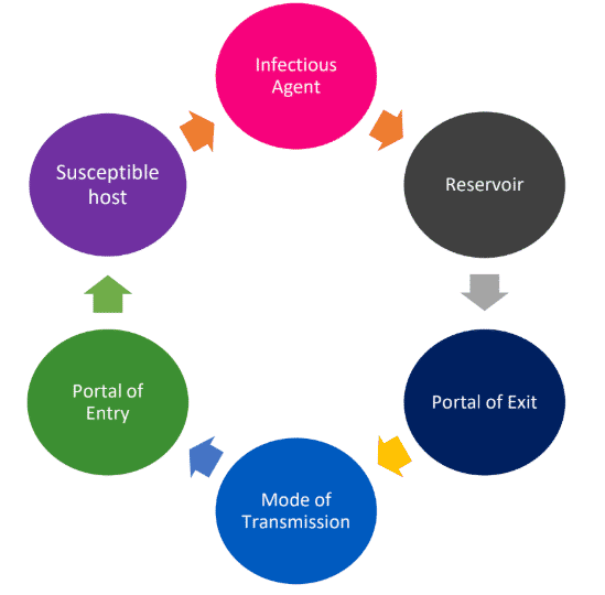 In order for the spread of infectious diseases to take place the Chain of Infection must be completed.