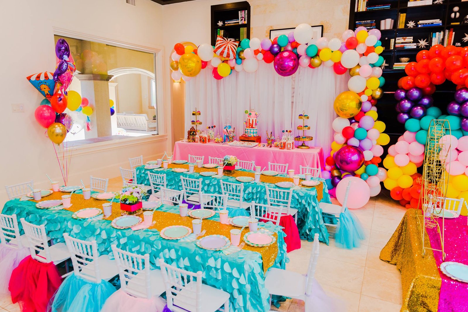 themed sweet packs, helium balloons,