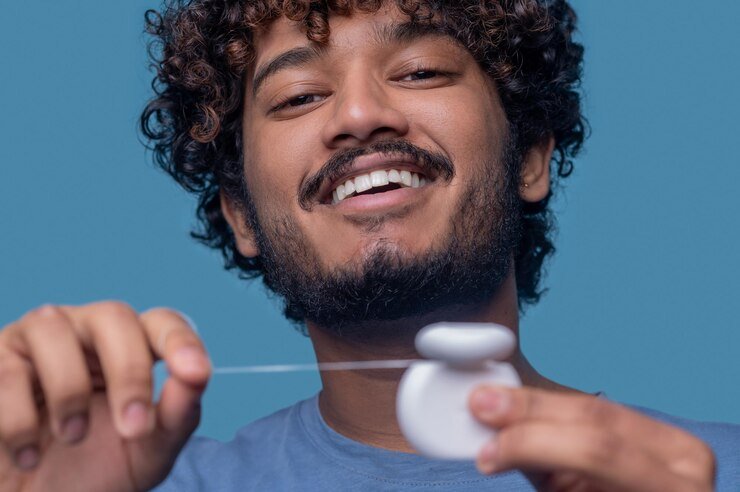 pull at prosthetics. There are also coloured, flat, thin and flavoured floss